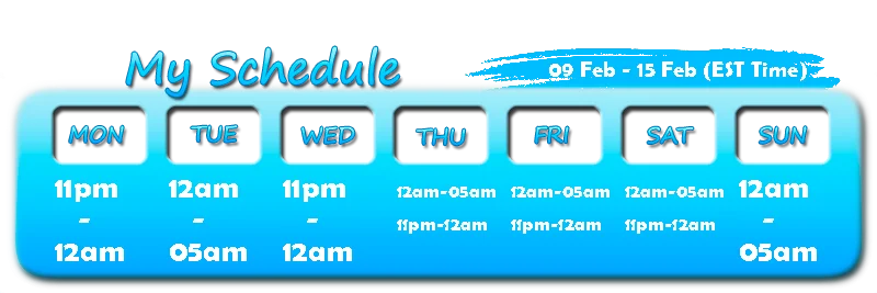 Догі-стайл, Еротичні танці, Мастурбація рукою, Мастурбація, Спанкінг, Вихваляння, Фут-фетиш, Демонстрація геніталій, Стриптиз, Олійне шоу, Оргазм, Мастурбація пальцями, Брудні розмови, Самовідсмоктування, Оцінювання прутня